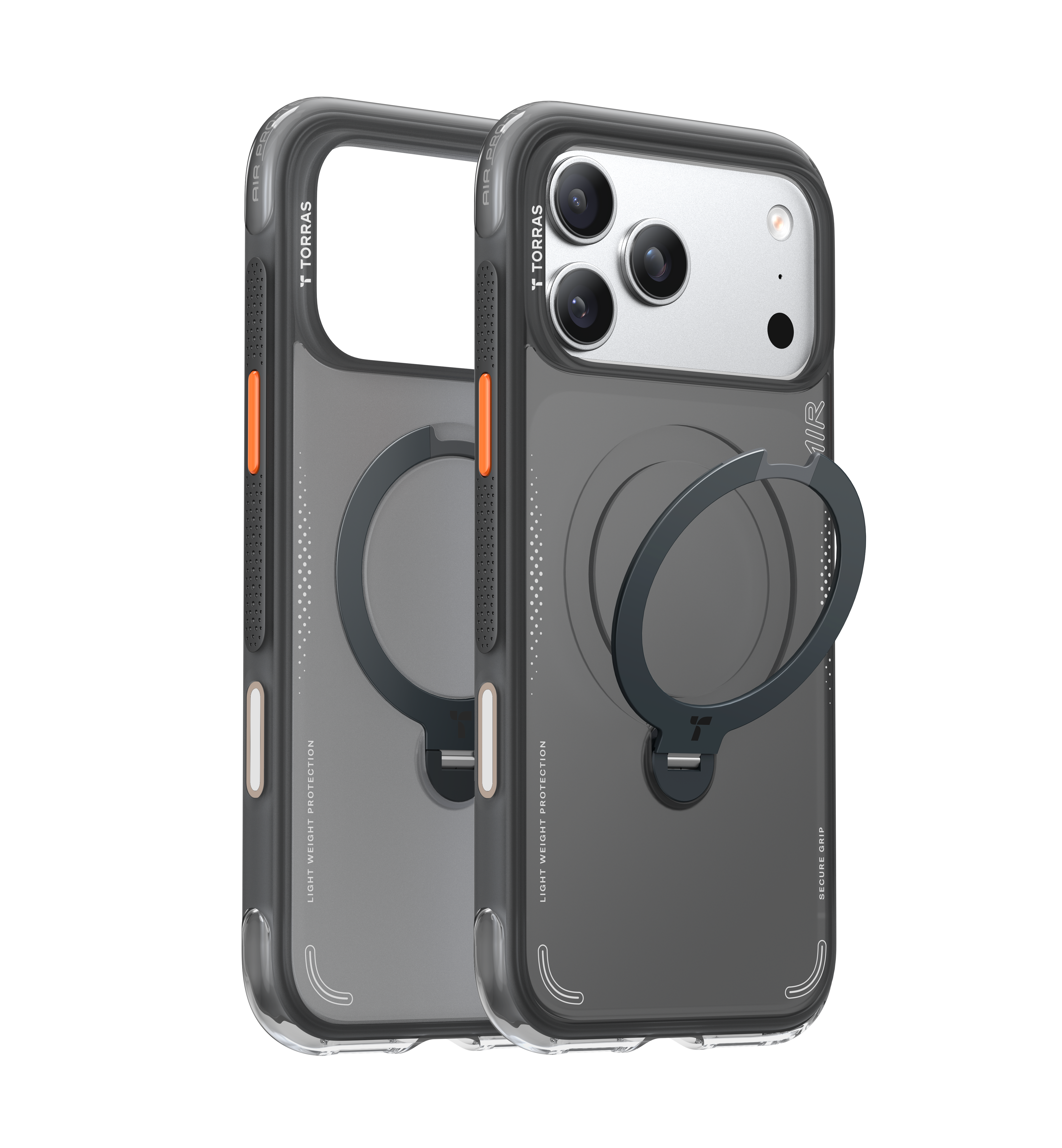 TORRAS Ostand Q3 Air orange Hoesje Geschikt voor Apple iPhone 17 Pro – Compatibel met MagSafe – 360° Draaibare Magnetische Standaard – Back Cover Kickstand Ring – AirCushion Hoeken - Shockproof NIEUW!